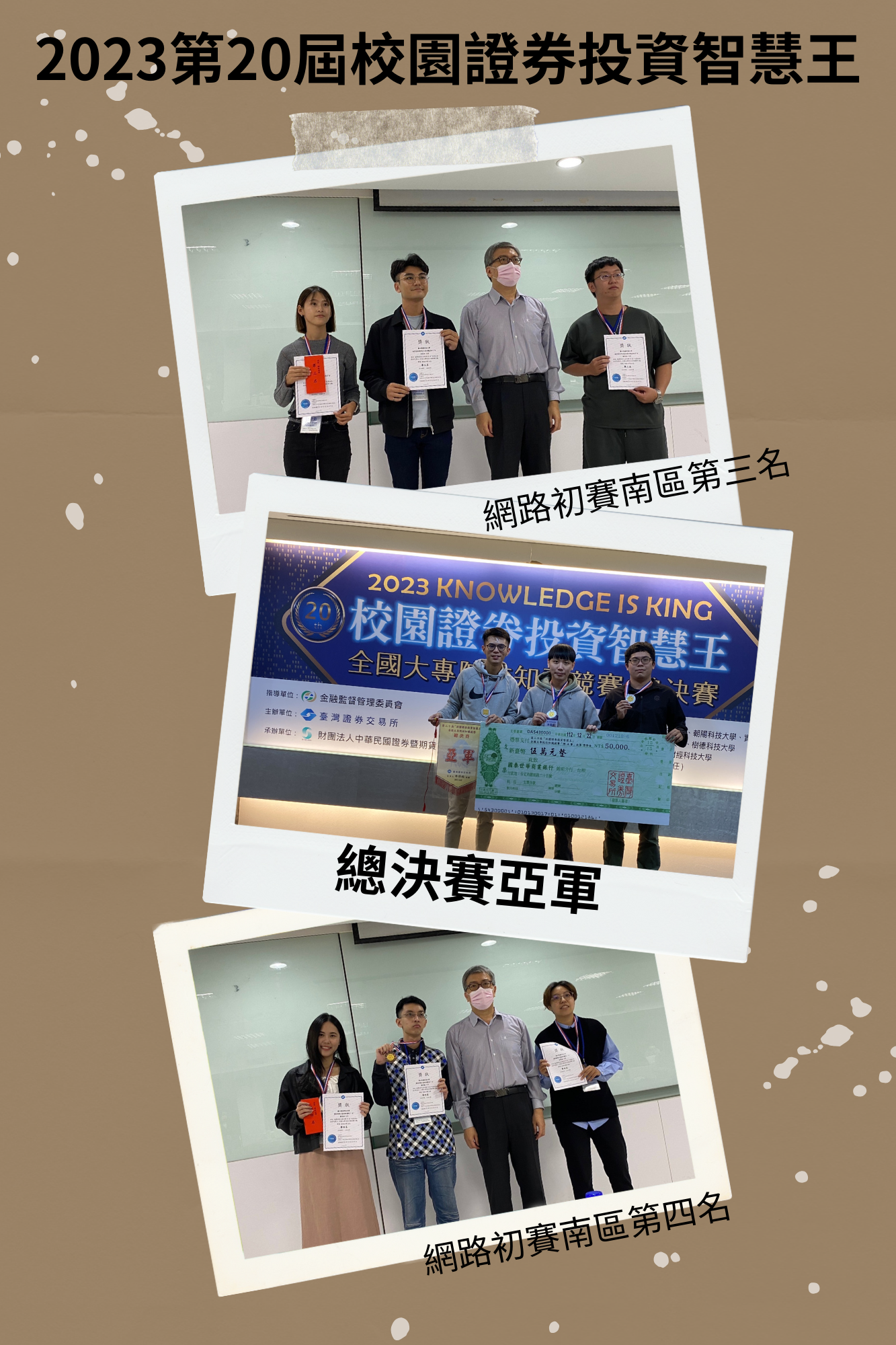 賀!本系王聖文老師指導同學參加「2023第20屆校園證券投資智慧王」榮獲總決賽亞軍!